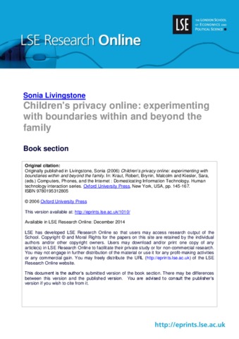 Children's privacy online: experimenting with boundaries within and beyond the family