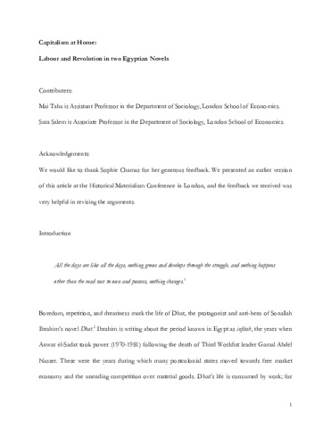 Capitalism at home: Labour and revolution in two Egyptian novels