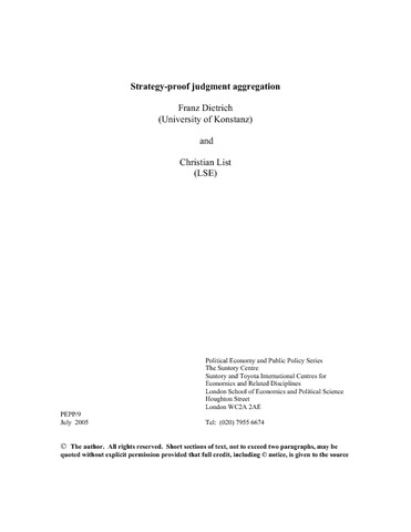 | Keywords | Judgment aggregation,strategy-proofness,logic,Gibbard-Satterthwaite theorem |