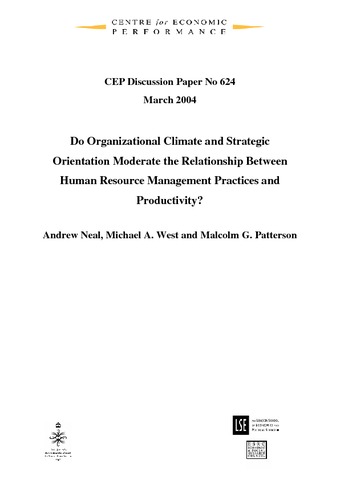 Do organisational climate and strategic orientation moderate the relationship between human resource management practices and productivity?