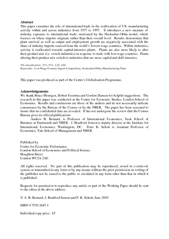 | Keywords | Low-Wage Country Import Competition,Heckscher-Ohlin,Manufacturing Plant |