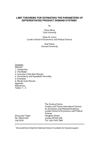 Limit theorems for estimating the parameters of differentiated product demand systems
