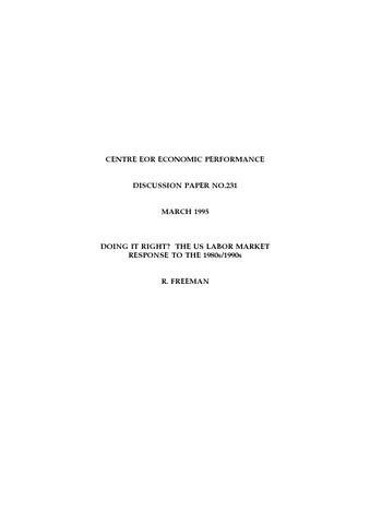 In this paper I examine both the positive and negative aspects of the US labor market response to the economic world of the 1980s/1990s. I review the economic development that created difficulties in the US and other advanced economies post the first oil shock; consider how a decentralised labor market might be expected to respond to them; and summarise the American response. I conclude by assessing the social welfare consequences of the American response relative to that in Europe.