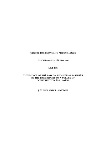 The impact of the law on industrial disputes in the 1980s: report of a survey of construction companies