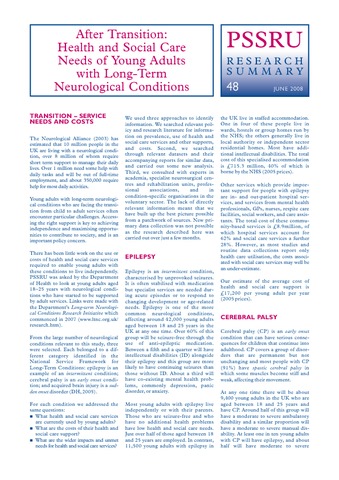 After transition: health and social care needs of young adults with long-term neurological conditions.