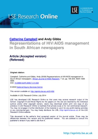 Representations of HIV/AIDS management in South African newspapers