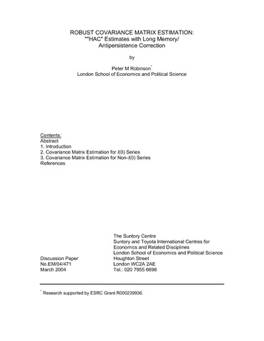 | Keywords | Covariance matrix estimation; long memory; antipersistence correction; "HAC" estimates; vector process; spectral density. |