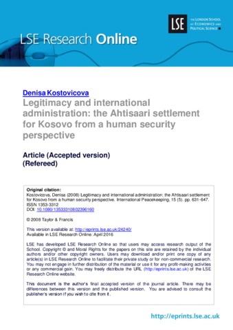 Legitimacy and international administration: the Ahtisaari settlement for Kosovo from a human security perspective