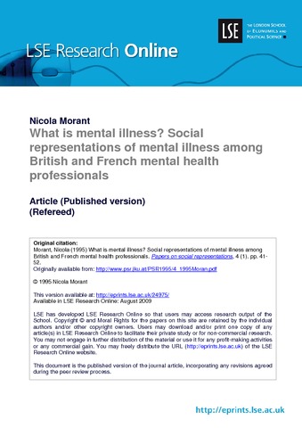 What is mental illness?: social representations of mental illness among British and French mental health professionals