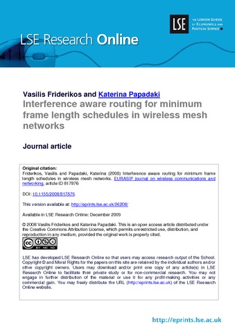 Interference aware routing for minimum frame length schedules in wireless mesh networks