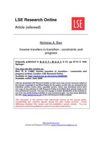 Visiting the main employment office in Warsaw in late 1989, I asked how many people they were currently paying benefits to. The answer (in a city of 1.6 million people) was five. A year later, unemployment in Poland was more than a million, and by December 1993 was three million. There is no need to belabour the resulting strains on a social safety net designed for a very different régime. This paper discusses how the safety nets in the reforming countries, though in many ways well-adapted to the old system, were poorly suited to the needs of a market economy, and what progress has been made in adjusting them. The problems faced by the system of income transfers need to be seen against the backdrop of broader constraints facing policy makers at the start of the reforms. The emphasis on these constraints is not intended to sound gloomy; rather the opposite – it shows how much progress has been made in very difficult circumstances. A former French Prime Minister invited fellow citizens to imagine that France had over a very few years to go through the Political Revolution of 1789, the Industrial Revolution of the nineteenth century and the decolonisation of the 1960’s. That, he pointed out, was precisely what the world community is asking Russia to achieve.