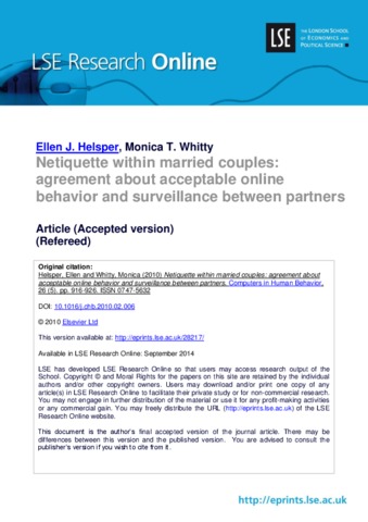 | Keywords | nettiquette,Internet,marriage,surveillance,intimate relationships |