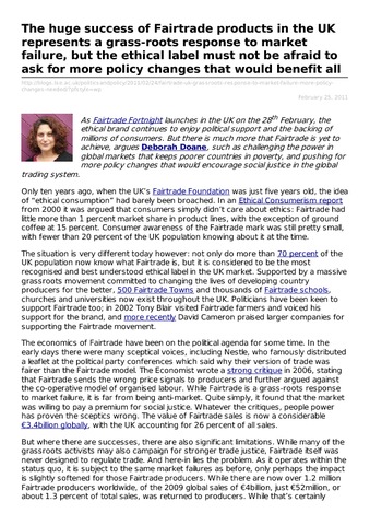 The huge success of Fairtrade products in the UK represents a grass-roots response to market failure, but the ethical label must not be afraid to ask for more policy changes that would benefit all