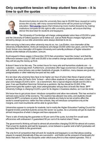 Only competitive tension will keep student fees down – it is time to quit the quotas