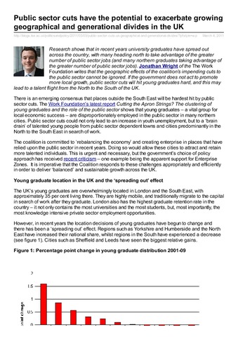 Public sector cuts have the potential to exacerbate growing geographical and generational divides in the UK