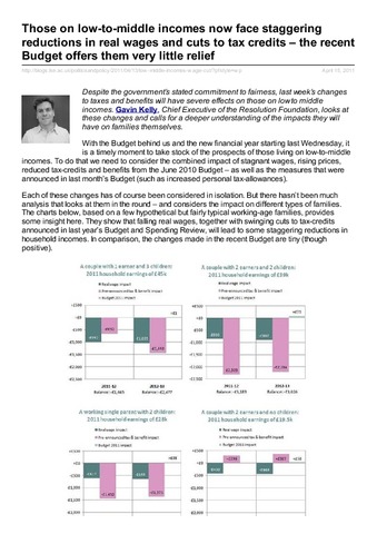Those on low-to-middle incomes now face staggering reductions in real wages and cuts to tax credits – the recent Budget offers them very little relief.