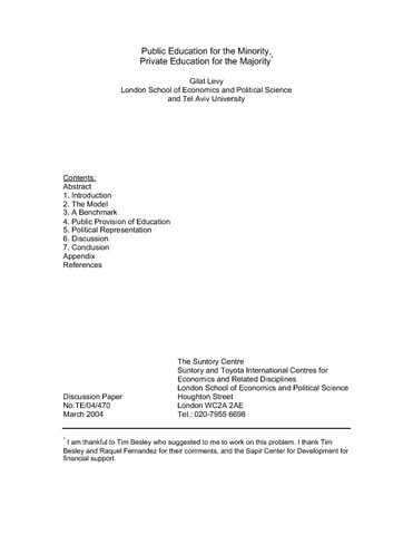Public provision of private goods such as education is usually viewed as a form of redistribution in kind. However, does it arise when income redistribution is feasible as well? In this paper I analyse a two-dimensional model of political decision making. Society has to choose both the tax rate and the allocation of the revenues between income redistribution and public provision of education. The political process that I analyse involves endogenous parties. Parties have a unique role in the model; I assume that parties increase the commitment ability of politicians and, as a result, increase the ability of different groups in society to compromise with one another. I find that public provision of education arises as an anti-majoritarian outcome; public provision of education arises only when those who benefit from education, e.g., voters with children, are a minority. The reason is that when education is consumed only by a minority, such redistribution in kind is 'cheap' relative to universal income redistribution, i.e., it can be effectively provided even with low taxes. Public provision of education arises then as a political compromise offered by the party of the poor who benefit from education and the rich voters who prefer low taxes. Thus, when those who benefit from education are a minority, it is publicly provided. When those who benefit from education are a majority, they have to buy private education, since there is no public provision of this good.