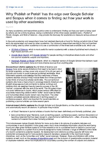 Why ‘Publish or Perish’ has the edge over Google Scholar and Scopus when it comes to finding out how your work is used by other academics