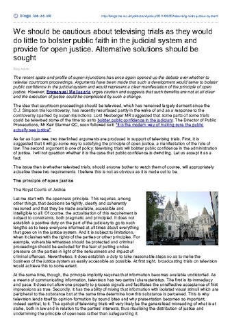 We should be cautious about televising trials as they would do little to bolster public faith in the judicial system and provide for open justice: alternative solutions should be sought