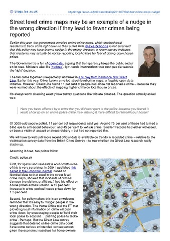 Street level crime maps may be an example of a nudge in the wrong direction if they lead to fewer crimes being reported