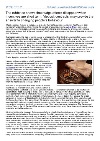 Effective policies that aim to nudge people to alter their behaviour to become more healthy have been increasingly under the spotlight. Taking the example of stopping smoking, Adam Oliver argues that conventional nudge initiatives are rarely successful in the long term. Instead, he argues, policy makers should take a closer look at ‘deposit contracts’, which would give people a real financial incentive to change their behaviour.