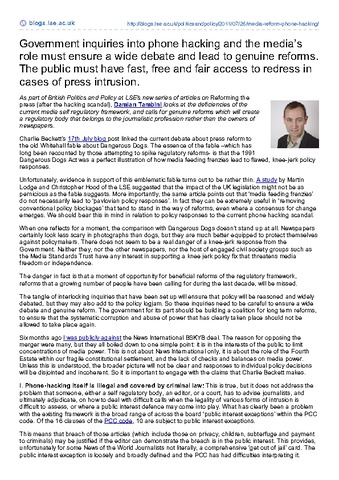 Government inquiries into phone hacking and the media’s role must ensure a wide debate and lead to genuine reforms. The public must have fast, free and fair access to redress in cases of press intrusion.
