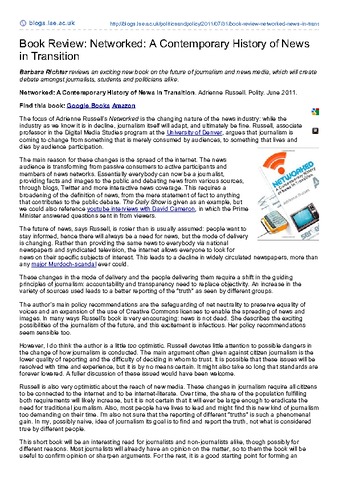 Barbara Richter reviews an exciting new book on the future of journalism and news media, which will create debate amongst journalists, students and politicians alike.