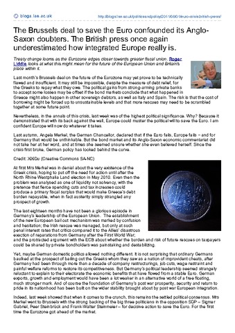 The Brussels deal to save the Euro confounded its Anglo-Saxon doubters. The British press once again underestimated how integrated Europe really is