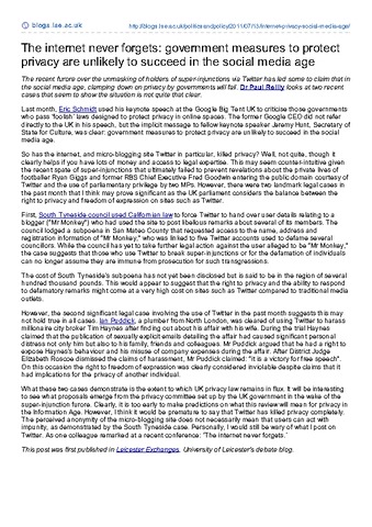 The internet never forgets: government measures to protect privacy are unlikely to succeed in the social media age