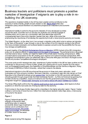 Business leaders and politicians must promote a positive narrative of immigration if migrants are to play a role in re-building the UK economy.