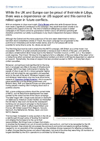 With an endgame in Libya now in sight, Chris Brown writes that while European forces have made a significant contribution to the campaign, they would have been unable to do so without the support of the US. This kind of American willingness to assist in similar campaigns in the future cannot be guaranteed; further cuts to UK defence spending will therefore undermine our ability to participate in any future independent European military actions.