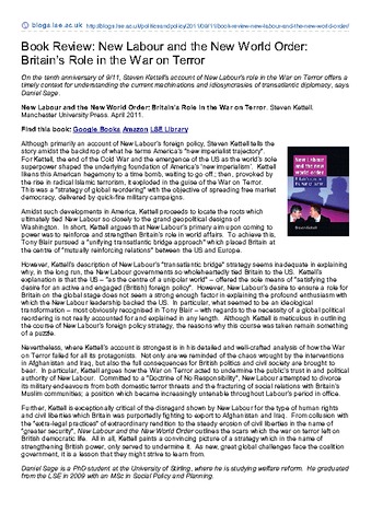 Book review: New Labour and the new world order: Britain’s role in the war on terror.
