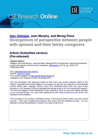 | Keywords | aphasia, UK, family care, role, identity, disagreement, misunderstanding |