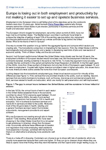 Europe is losing out in both employment and productivity by not making it easier to set up and operate business services