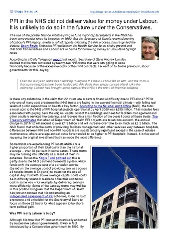 PFI in the NHS did not deliver value for money under Labour. It is unlikely to do so in the future under the Conservatives.