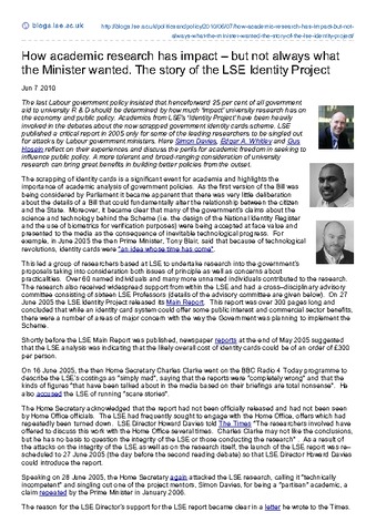 - http://blogs.lse.ac.uk/politicsandpolicy/2010/06/07/how-academic-research-has-impact-but-not-always-what-the-minister-wanted-the-story-of-the-lse-identity-project/ (Publisher)
