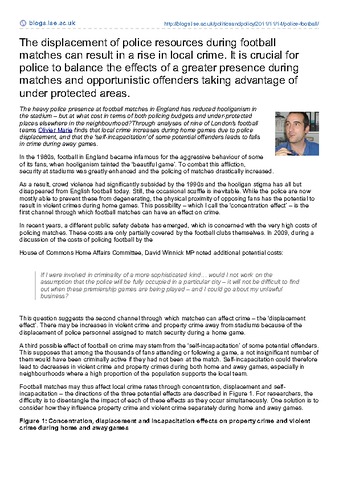 The displacement of police resources during football matches can result in a rise in local crime: it is crucial for police to balance the effects of a greater presence during matches and opportunistic offenders taking advantage of under protected areas