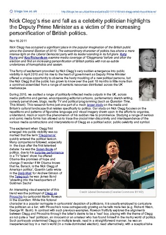 Nick Clegg’s rise and fall as a celebrity politician highlights the Deputy Prime Minister as a victim of the increasing personification of British politics.