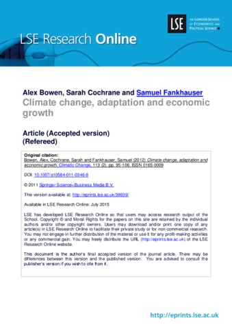 This paper explores the links between economic growth and the impacts of climate change. Inclusive, pro-poor growth is central to the development of low-income countries. There is also a broad consensus that growth and development are important to reduce vulnerability to climate change. Growth does not automatically reduce vulnerability, only the right kind of growth does. The paper aims to develop a better understanding of what the “right kind of growth” may be. We find that many growth policies, such as investment in skills and access to finance, indeed reduce vulnerability to climate change. However, climate change calls for some adjustments in growth policy. In particular, investment in infrastructure and efforts to stimulate entrepreneurship and competitive markets must take more of a risk management perspective and recognise climate risks.
