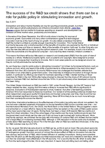 The success of the R&D tax credit shows that there can be a role for public policy in stimulating innovation and growth