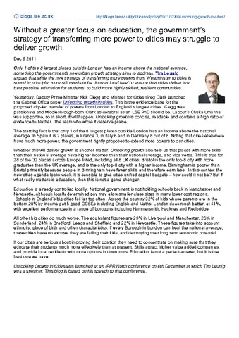 Only 1 of the 8 largest places outside London has an income above the national average, something the government’s new urban growth strategy aims to address. Tim Leunig argues that while the new strategy of transferring more powers from Westminster to cities is sound in principle, more still needs to be done at local level to ensure that cities deliver the best possible education for students, to build more highly skilled, resilient communities.