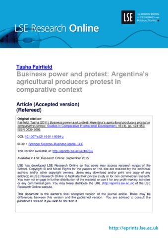 Business power and protest: Argentina’s agricultural producers protest in comparative context