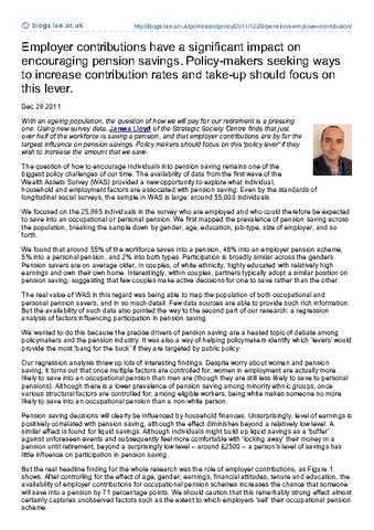 With an ageing population, the question of how we will pay for our retirement is a pressing one. Using new survey data, James Lloyd of the Strategic Society Centre finds that just over half of the workforce is saving a pension, and that employer contributions are by far the largest influence on pension savings. Policy makers should focus on this ‘policy lever’ if they wish to increase the amount that we save.