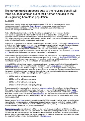 The government’s proposed cuts to the housing benefit will force 130,000 families out of their homes and add to the UK’s growing homeless population