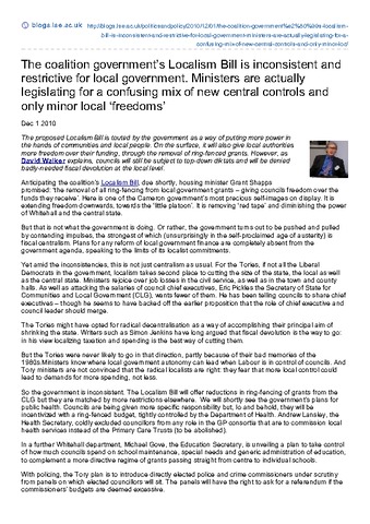 - http://blogs.lse.ac.uk/politicsandpolicy/2010/12/01/the-coalition-government%E2%80%99s-localism-bill-is-inconsistent-and-restrictive-for-local-government-ministers-are-actually-legislating-for-a-confusing-mix-of-new-central-controls-and-only-minor-loc/ (Publisher)