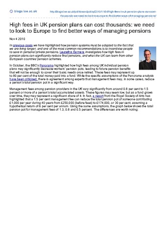 In previous posts we have highlighted how pension systems must be adapted to the fact that we are living longer, and one of the most common recommendations is to incentivise people to save in personal private pensions. Leandro Carrera investigates how high fees in pension plans can significantly reduce final pensions, and what the UK can learn from other European countries’ pension schemes.