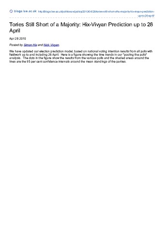 Tories still short of a majority: Hix-Vivyan prediction up to 26 April