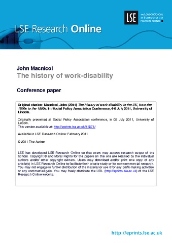 The history of work-disability in the UK, from the 1880s to the 1950s.