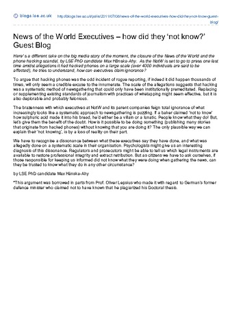 News of the World executives – how did they ‘not know?’ (guest blog).