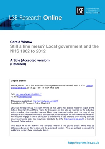Still a fine mess? Local government and the NHS 1962 to 2012